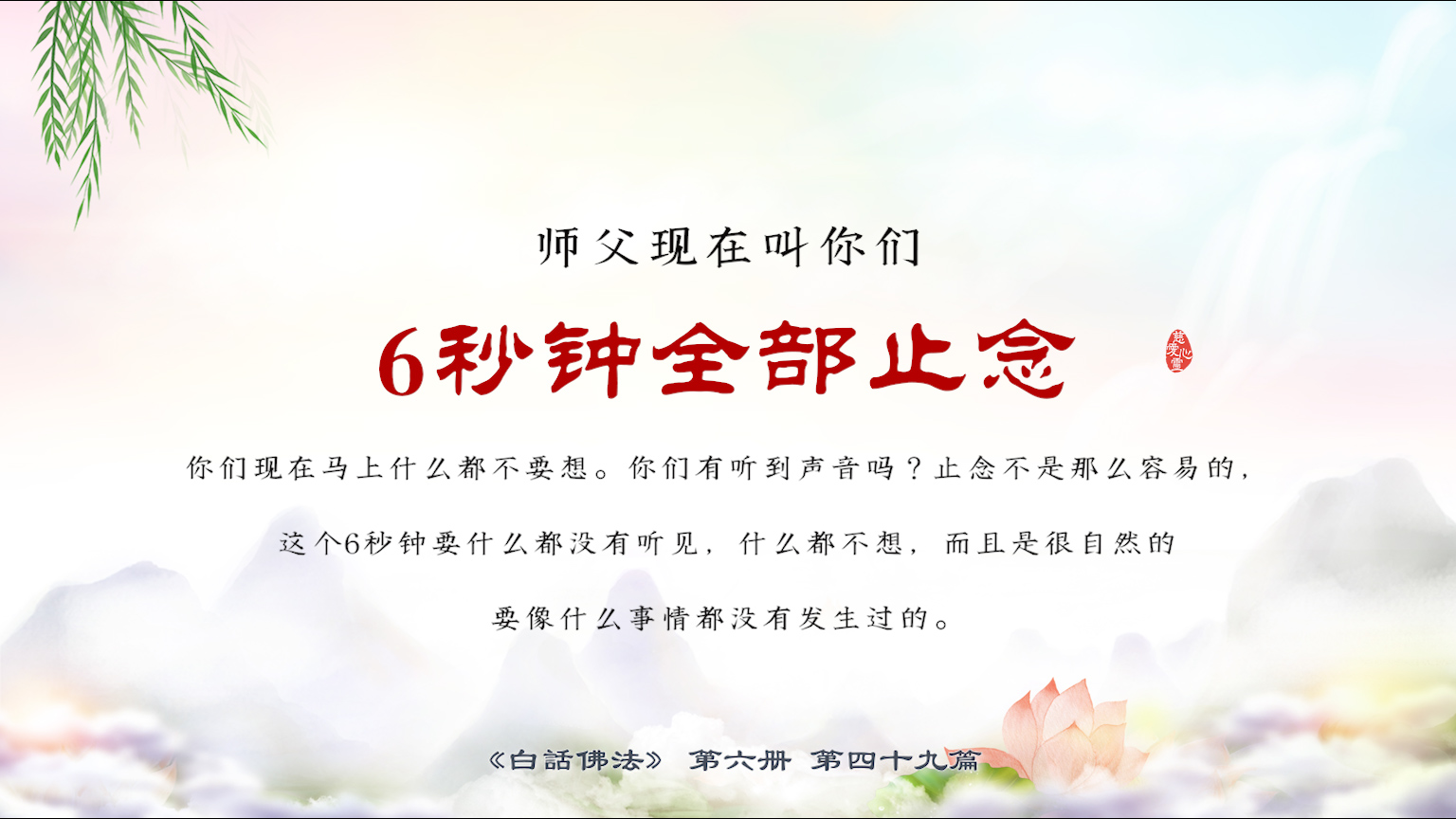 不限会员 6-49-5师父现在叫你们6秒钟全部止念,你们现在马上什么都不要想。你们有听到声音吗?止念不是那么容易的,这个6秒钟要什么都没有听见,什么都不想,而且是很自然的【图】